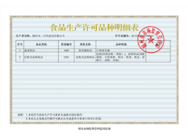 食品生產(chǎn)許可品種明細(xì)表